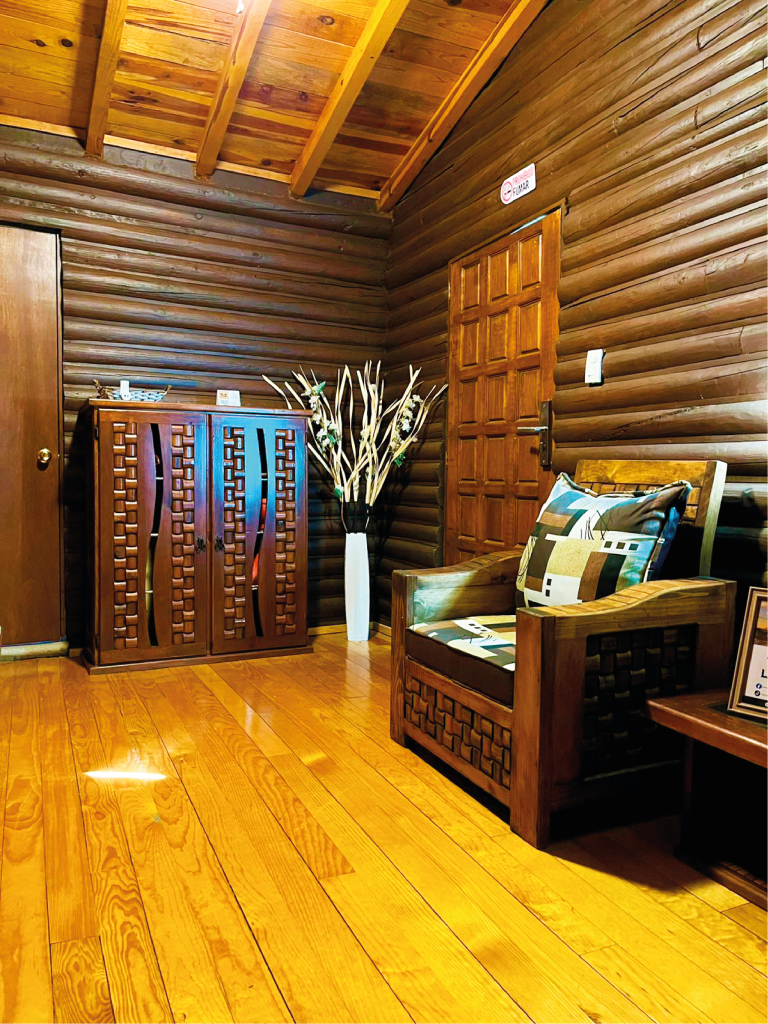 ACABADO: Paredes de madera térmica y techos altos.