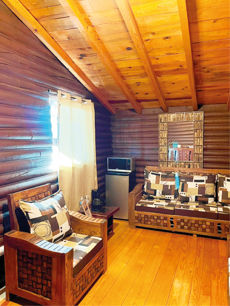 Equipada con dos habitaciones que incluyen una cama matrimonial para cada una con TV, aire mini Split , diseñada para hospedar hasta 4 personas por cabaña, con sala y frigobar , microondas , cafetera.